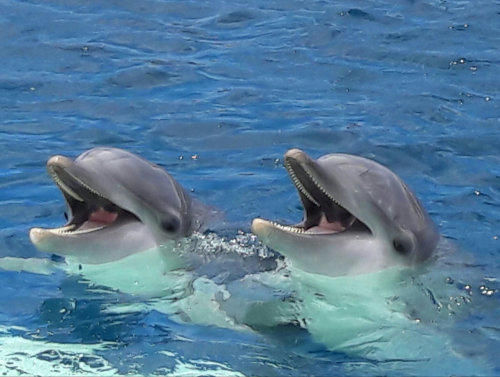 Die Show ist schon lange vorbei, da zeigen die Delfine des