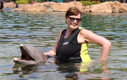 Gegen einen Aufpreis kann man “Schwimmen mit Delfinen”